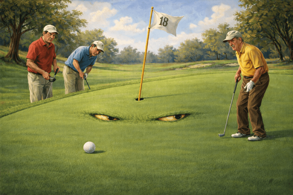 You may think that a golf course is a placid, inanimate, terrain of grass, sand and water, with a variety of pleasant vegetation, some small, some large. You are very wrong.